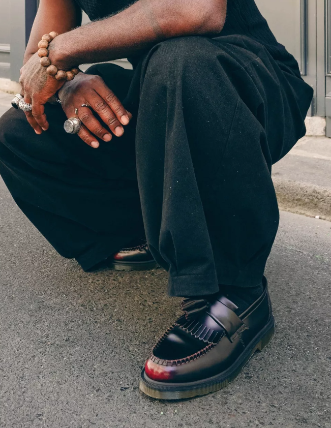 Les mocassins Adrian se sont coupé la frange et ont mis leurs pompons pour looker les dandies décalés fan du Doc. A vous les looks qui swinguent en mocassins Adrian de Dr. Martens.