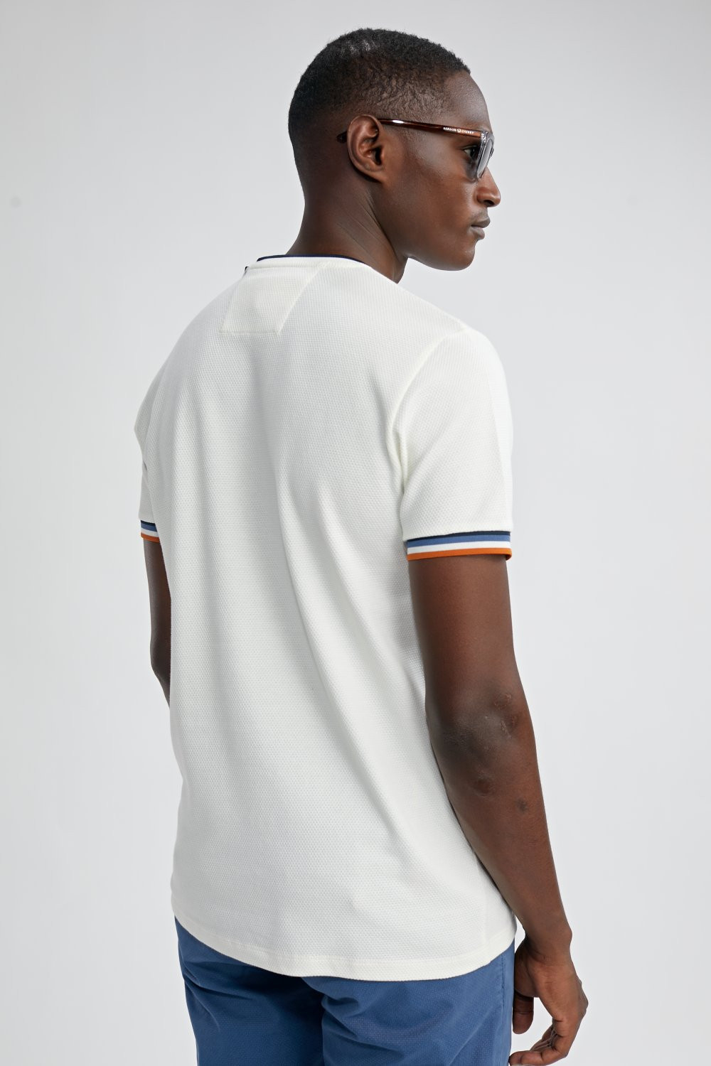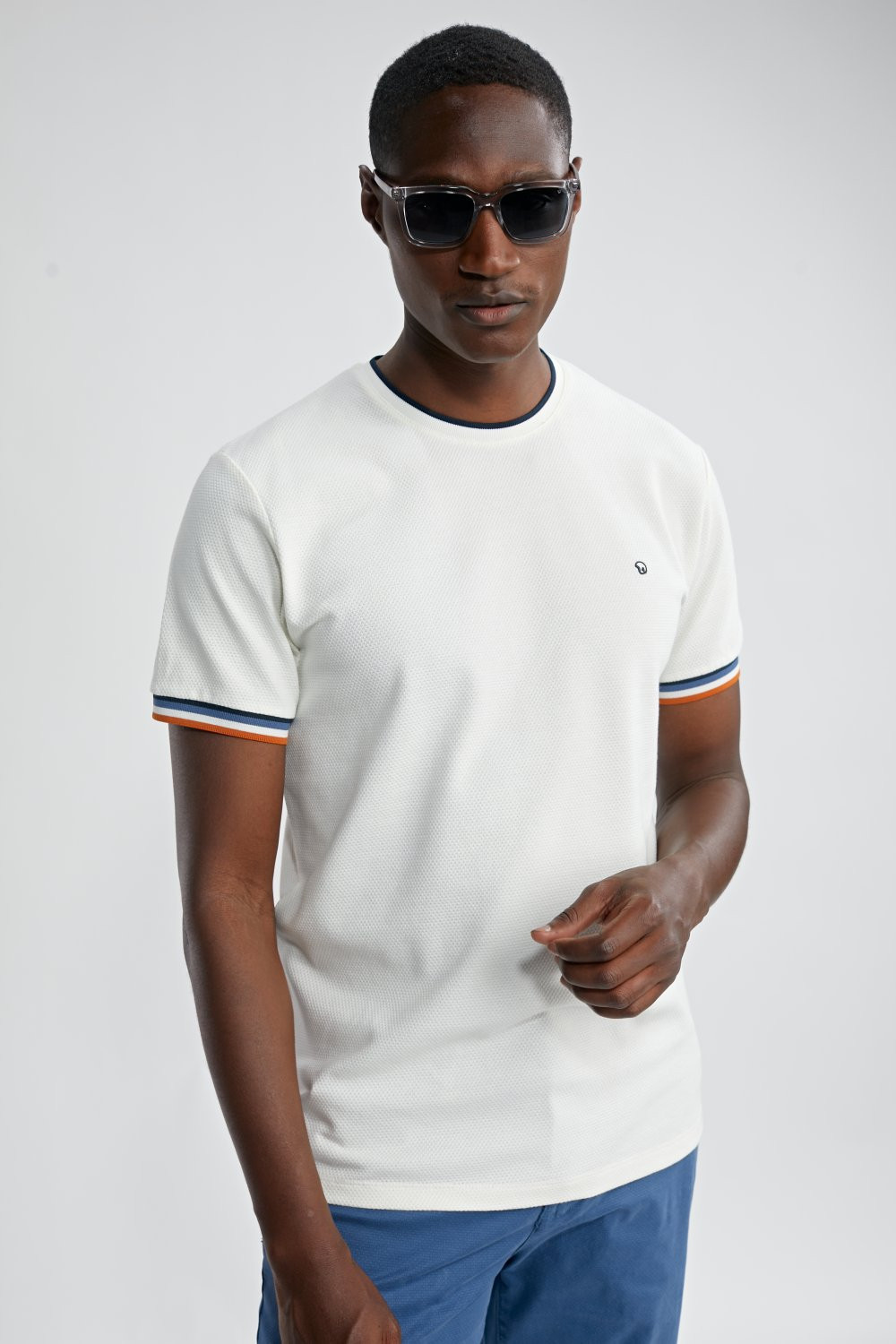 Le t-shirt TASTIERA séduit par sa maille jacquard texturée et ses finitions contrastées, offrant un style moderne et facile à porter. Une pièce idéale pour apporter du relief à une tenue estivale.